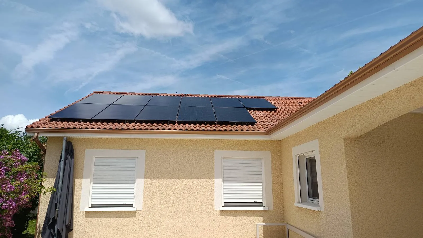 Installation photovoltaïque de 9 kWc à Trept, équipée de panneaux DMEGC 500Wc et de micro-onduleurs ENPHASE IQ8P pour une performance et une fiabilité optimales.