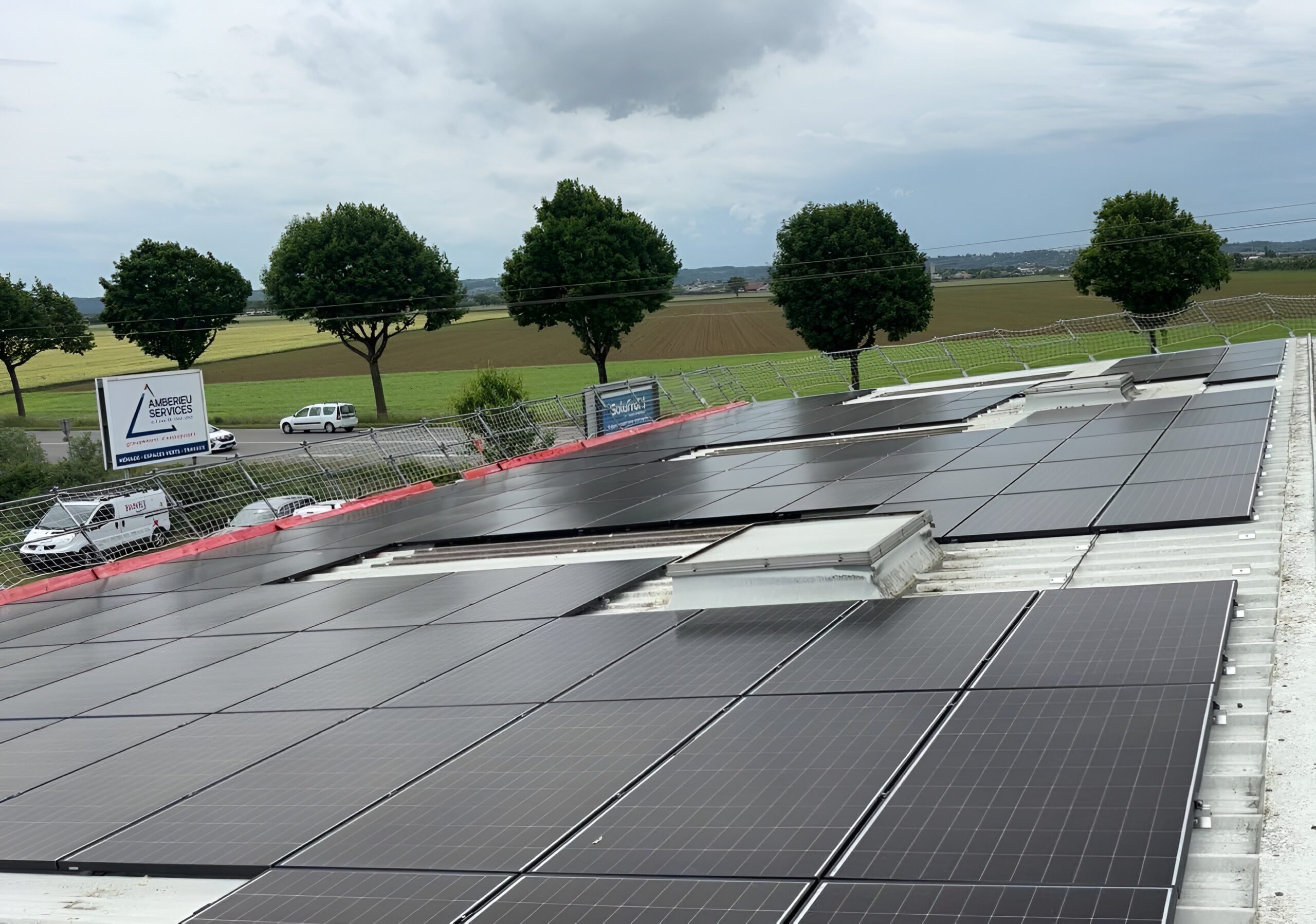 Installation solaire de 110 kWc à La Rênoverie d’Ambérieu-en-Bugey, équipée de panneaux Voltec 455 Wc et d’un onduleur SMA Sunny Tripower. Une solution performante et durable pour optimiser l’énergie solaire locale.