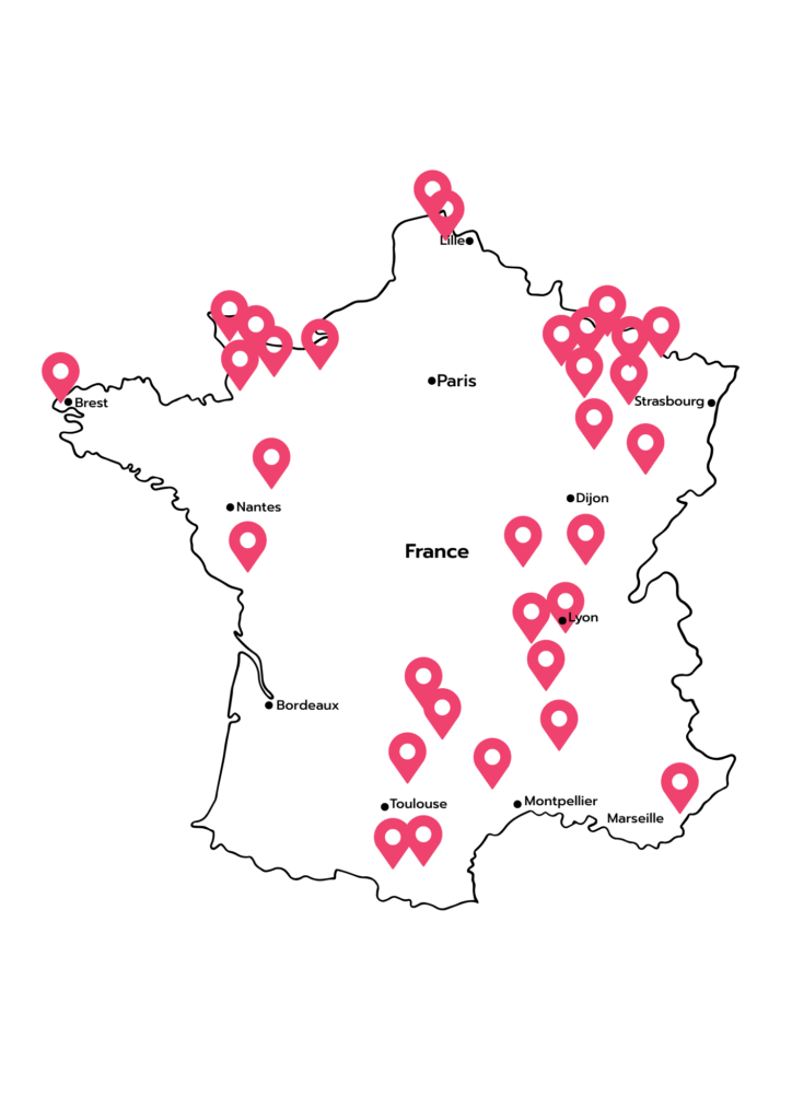 Chaque point sur cette carte représente une intervention de maintenance préventive réalisée par Zest.
